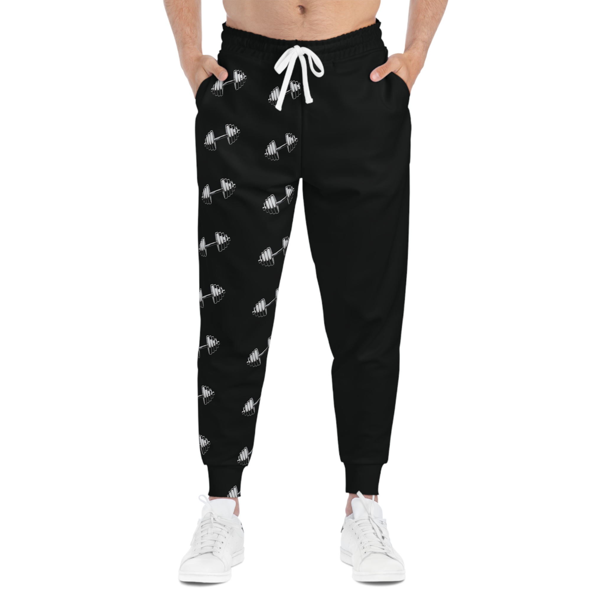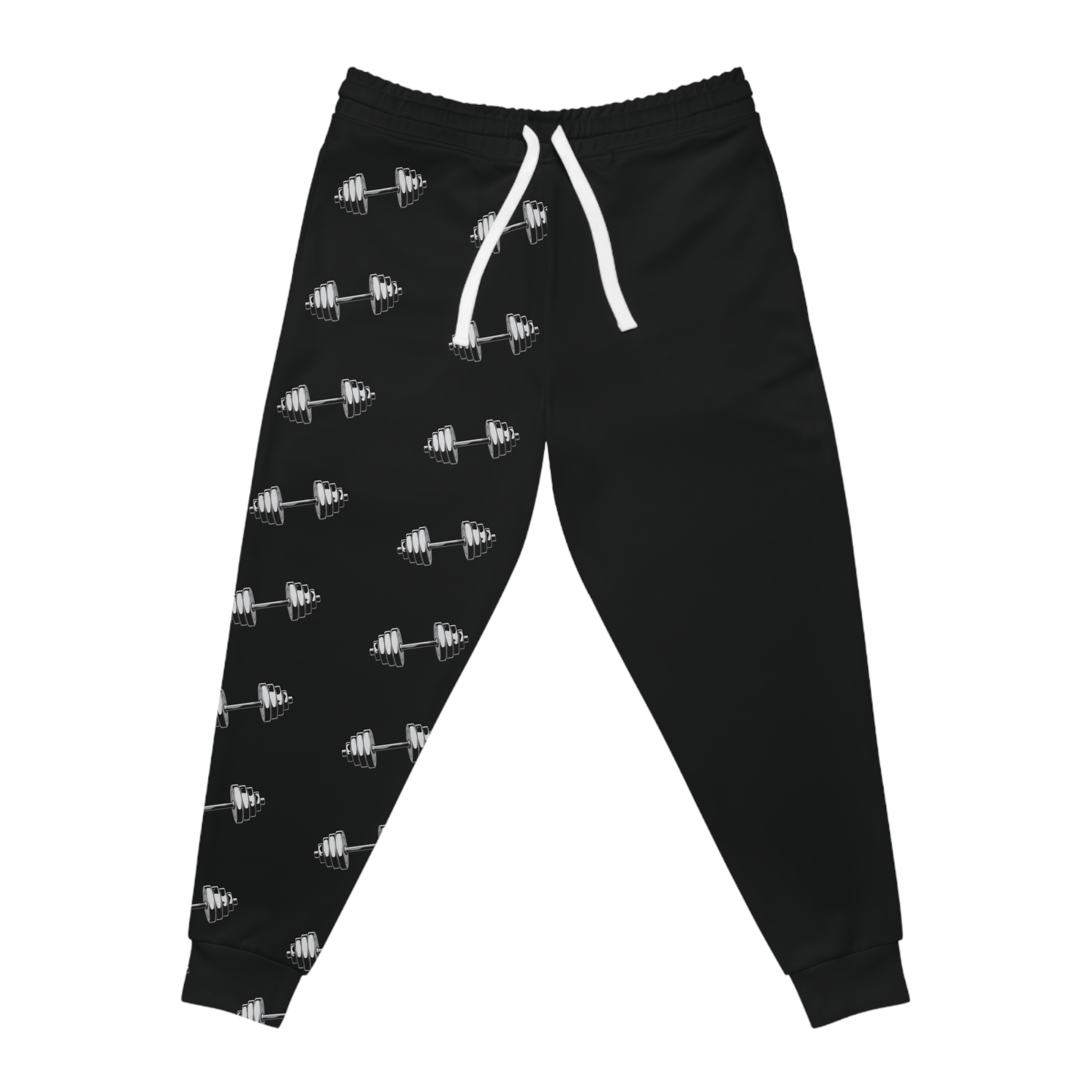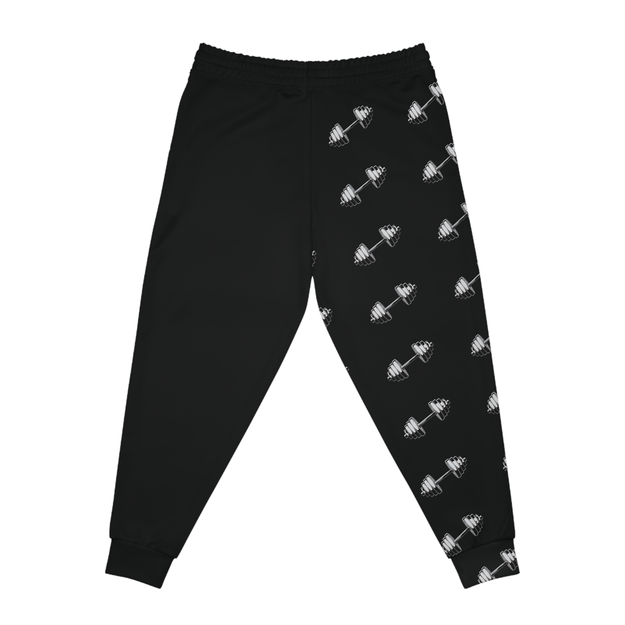 These athletic joggers bring movement and personality to your everyday routine. Crafted from a soft, lightweight polyester-spandex knit, they move with you whether you’re warming up at the gym or settling into a relaxed evening at home. The deep red base is offset by a diagonal repeating dumbbell motif that speaks directly to lifters and fitness lovers — subtle, bold, and energetic. Side-seam construction and roomy double-layer pockets keep small essentials close while the flat drawstring waistband lets you dial in the fit. The fabric has a substantial, midweight feel that still breathes; cuffs hold the silhouette in place without restricting motion. Slip them on after a session, pair with a hoodie for a recovery day, or wear them as part of a gym-ready outfit that carries your intent from warm-up to cool-down.